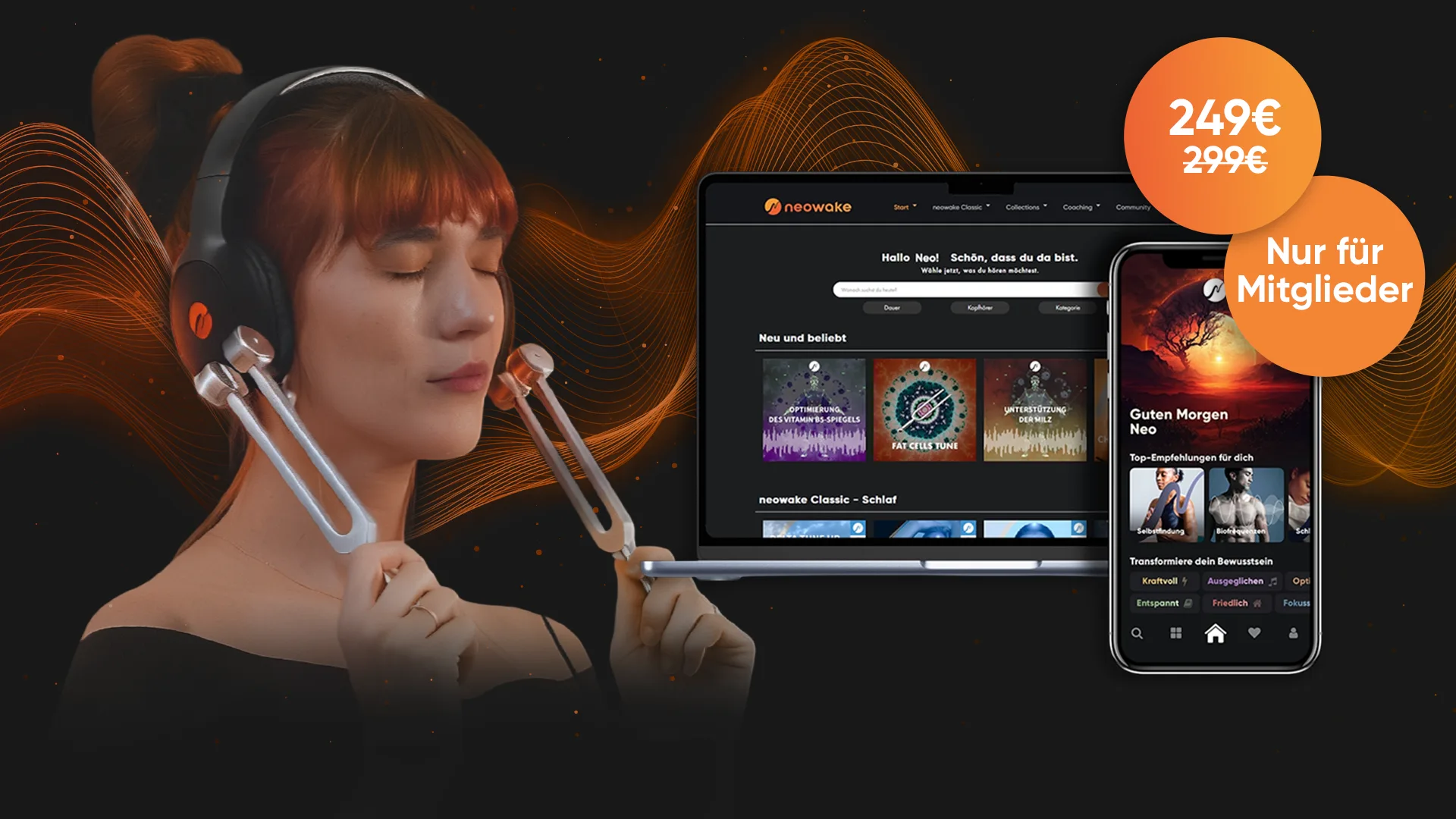 Vertiefe deine Praxis mit dem NeuroTuner-Set jetzt, indem du Zugriff auf die komplette neowake® Sound Mitgliedschaft erhältst.